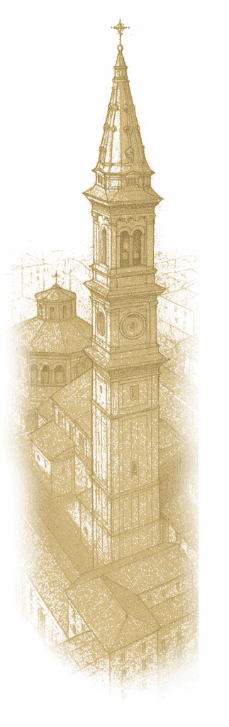 Il campanile, quindi, non è soltanto una struttura architettonica imponente, ma un simbolo visibile della presenza di Dio in mezzo al suo popolo. La sua funzione va oltre quella di una semplice torre: è un segno che richiama l’unità della comunità cristiana e la sua vocazione a riunirsi per celebrare la propria fede. Il suono delle campane rappresenta l’assemblea del popolo di Dio, l’“ekklesia”, termine greco da cui deriva la parola “chiesa”, che significa appunto “convocazione”. In questo senso, il campanile diventa il simbolo della chiamata divina che invita ogni fedele a partecipare attivamente alla vita della Chiesa.